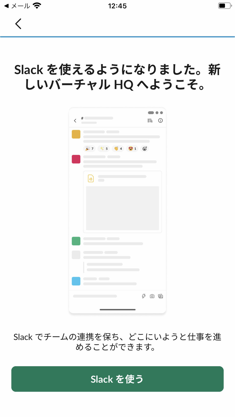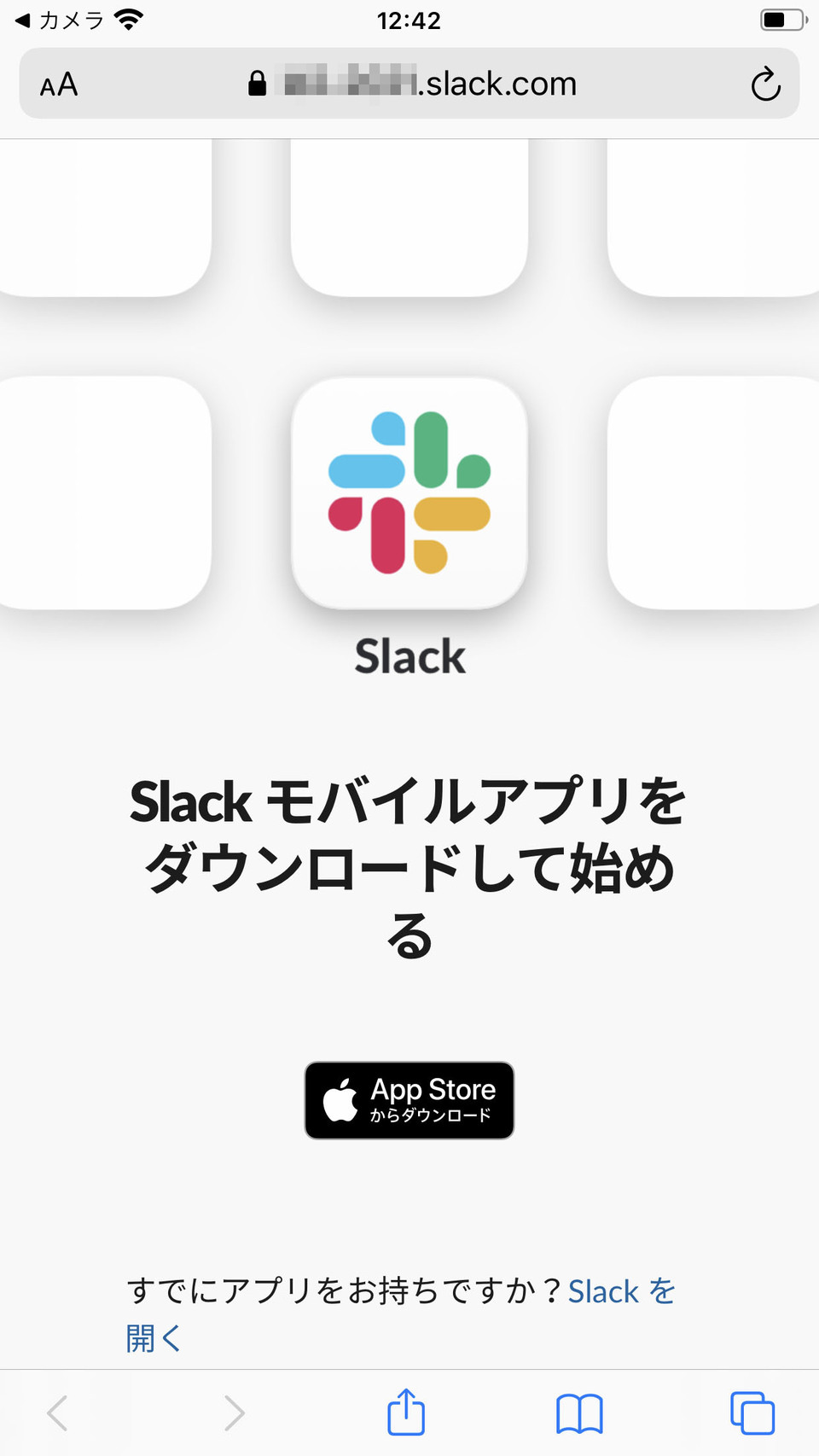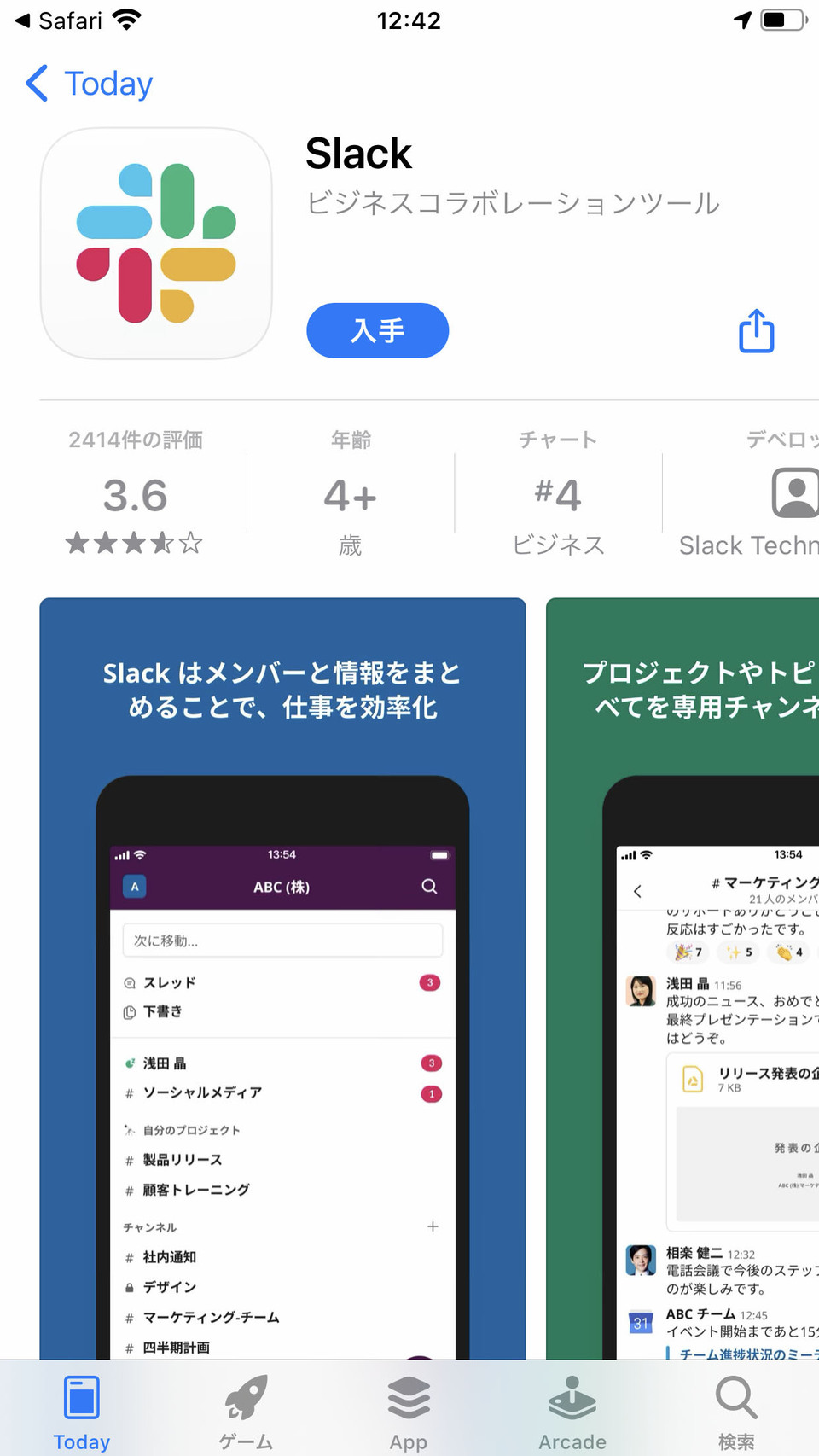 ③アプリストアで、Slackアプリを入手します。無料です。ダウンロードできたら、さっそくアプリを開きます。