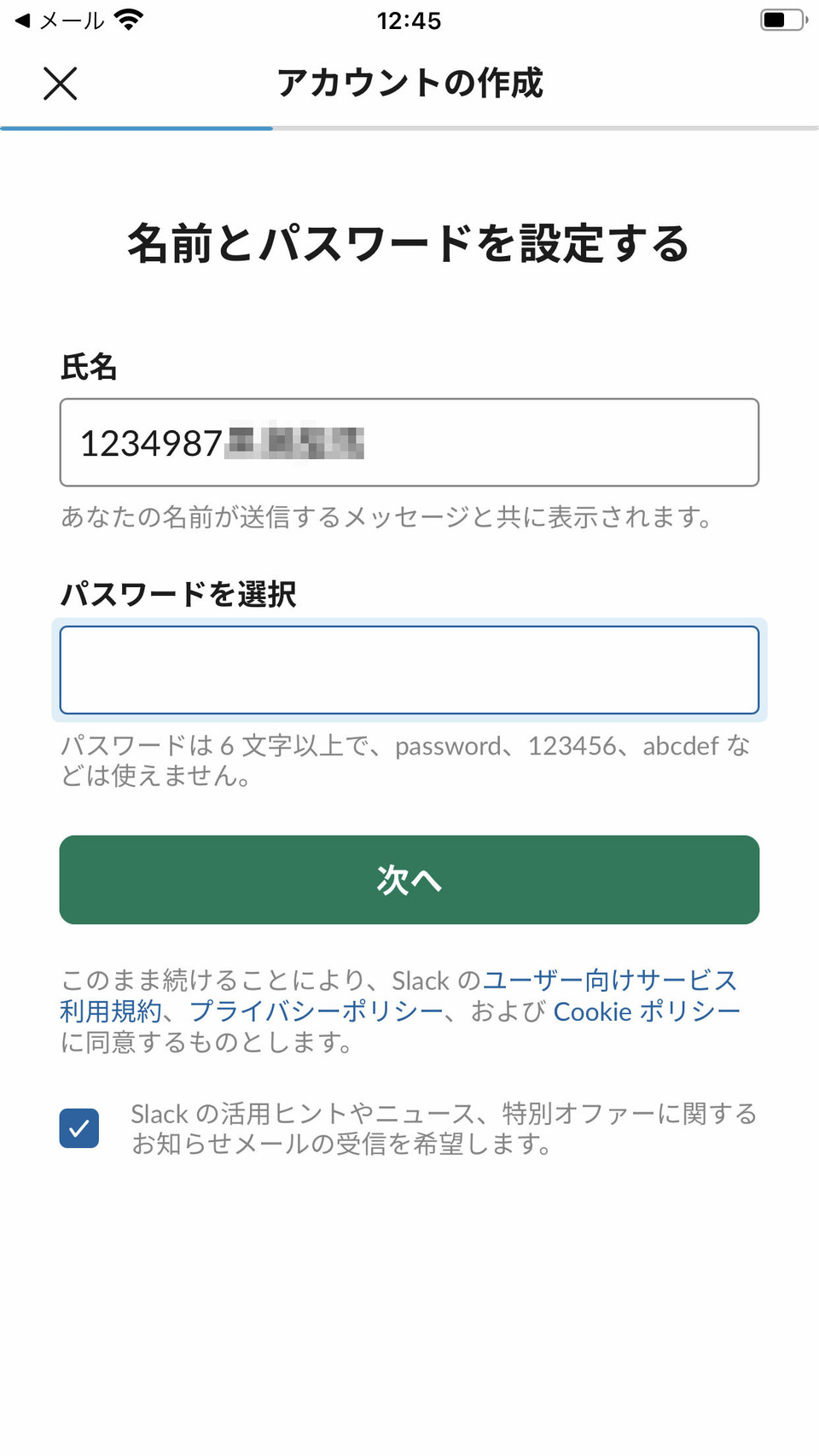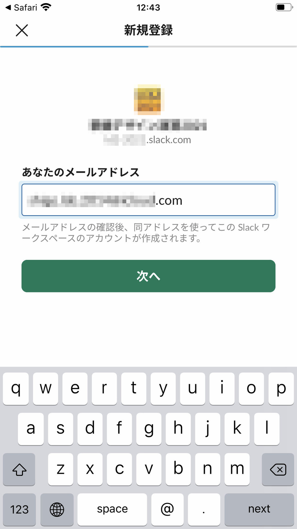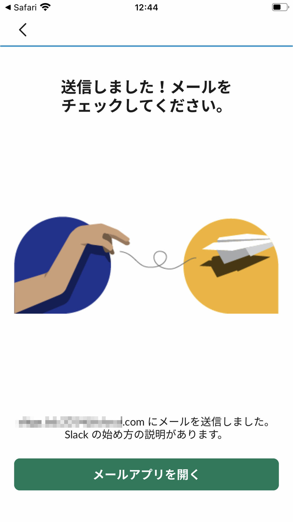 ⑥このようなメールが届いている筈です。「ここをクリックして続行」をタップすると、再びSlackアプリに戻ります。