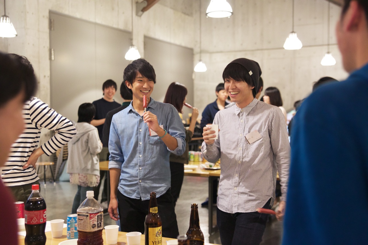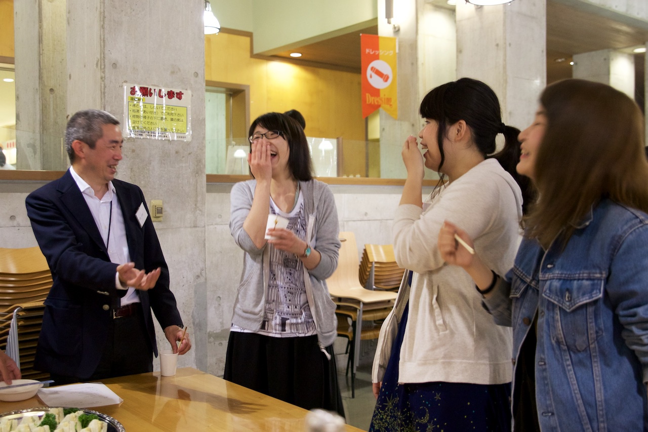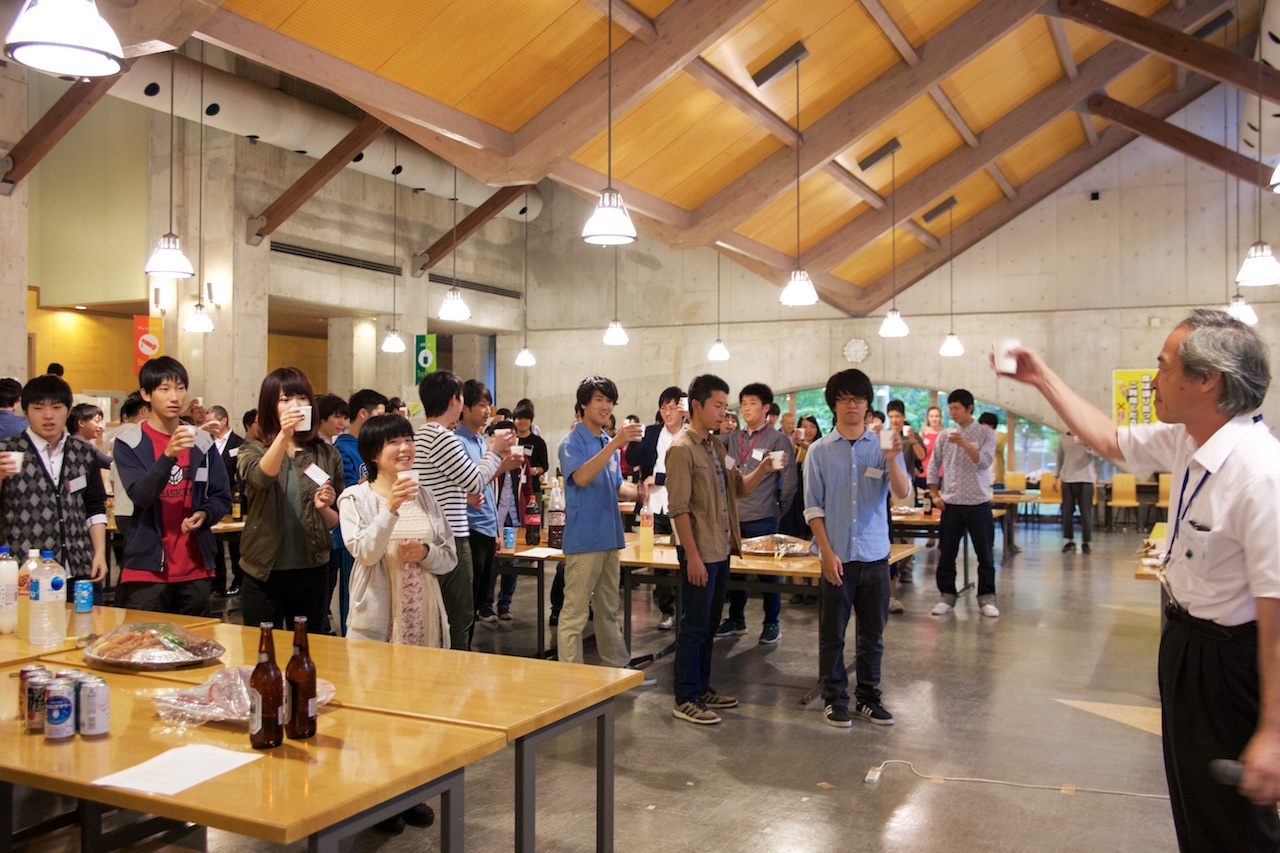 各研究室の先生たちや研究生とお酌をし合ったり、相談したりとコミュニケーションを取って楽しんでいる様子でした。
