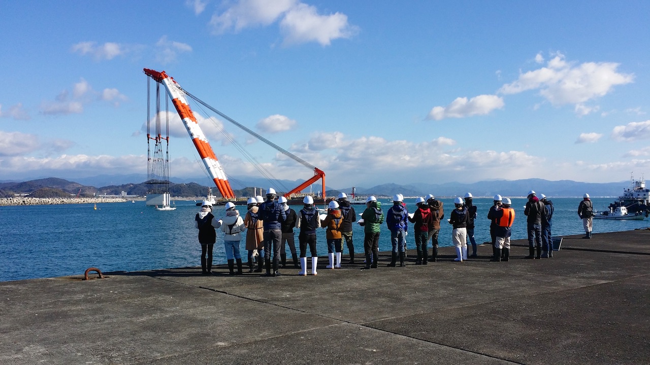 2016年1月20日、五洋建設による高知港三里地区防波堤のケーソン据付工事の見学がありました。