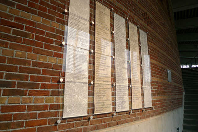 大学が公立になったことを記念して、大学設立時に寄付を頂いた、企業、団体、個人の方々の御芳名を記した、銘板を作成することになり、重山先生と研究室のメンバーがデザインを行いました。