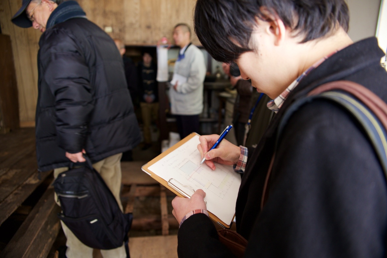 古民家の歴史的価値について造詣の深い溝渕先生に同行してもらい、色々教わりました。