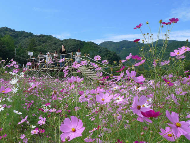 景観デザイン研究室がデザインに関わった越知町のコスモスの迷路で、コスモスが見頃を迎えています。
