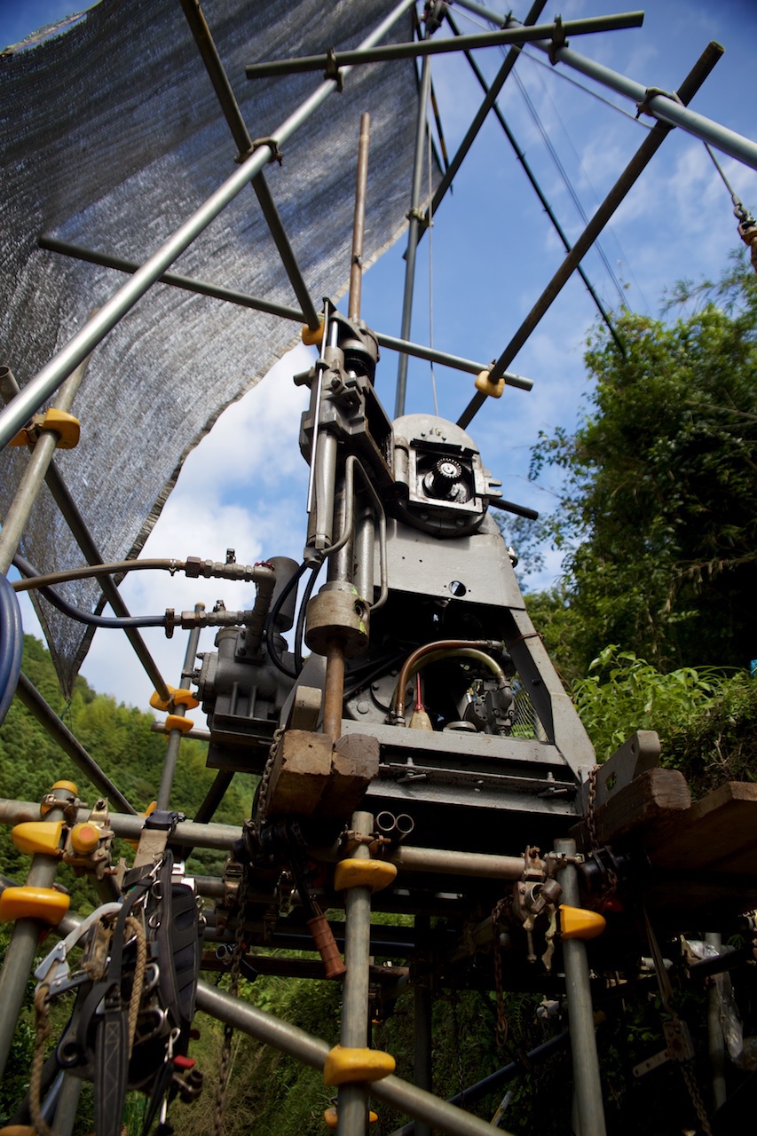 今回は、20m掘るということで、100m用のボーリング機械を出来るだけ軽量化して設置しています。