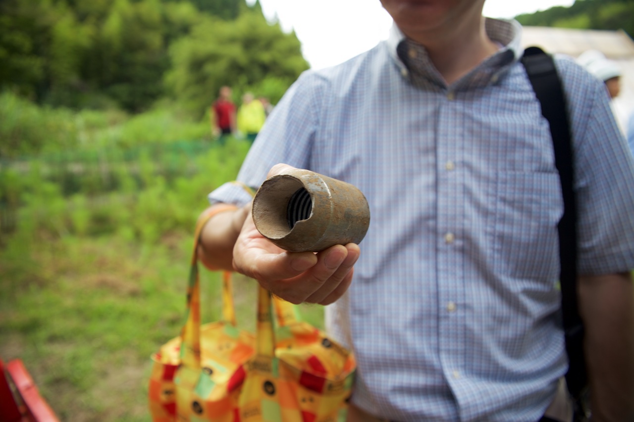 まずは、サンプリングとして50cmの土を採取し、ケースに入れていきます。