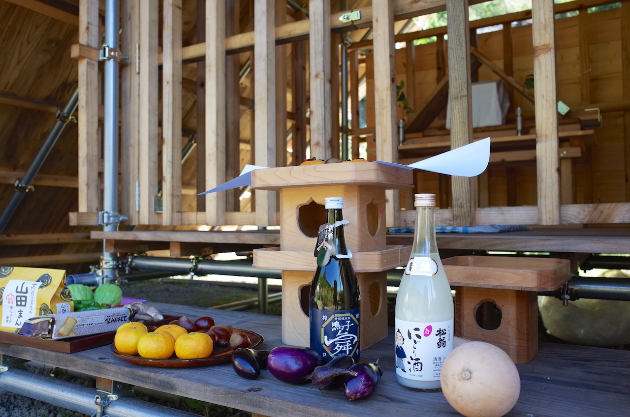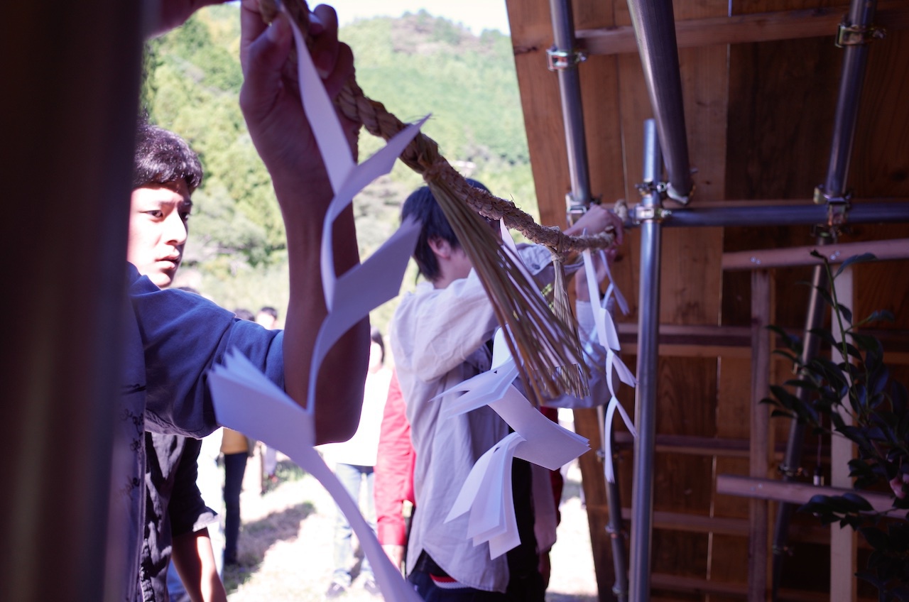 佐岡プロジェクトにおいて、新設された仮拝殿で「金峯神社の祭事」が行われました。