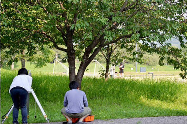 長い梅雨明けの蒸し暑い中、測量実習の設置測量が行われました。