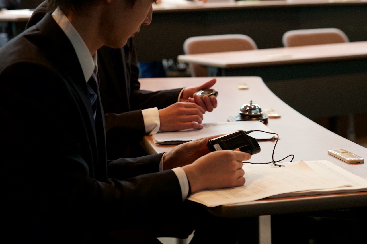 発表を終えた人はタイムキーパーとなり、次の発表者はマイクを持ってスタンバイ。