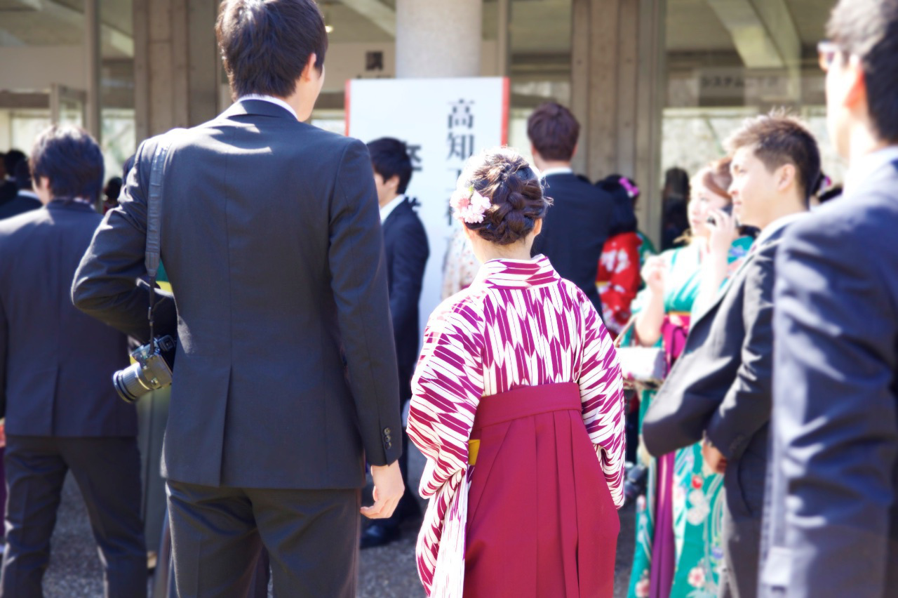 男性はスーツ、女性は袴姿が多く華やかでした。