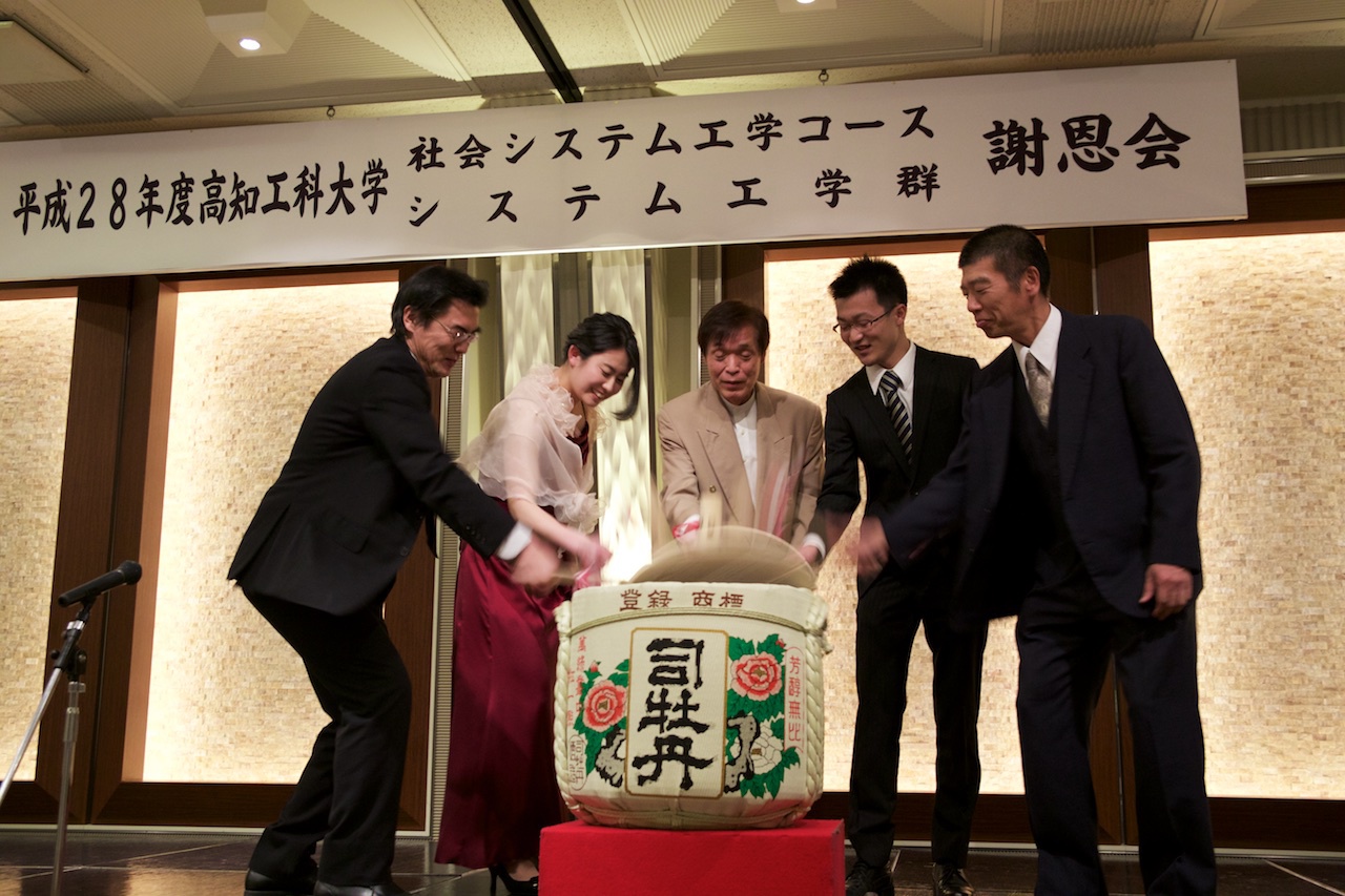 工科大学全体の式が終わると、別の教室で建築・都市デザイン専攻と社会システム工学コースの卒業生一人一人に卒業証書が授与されました。