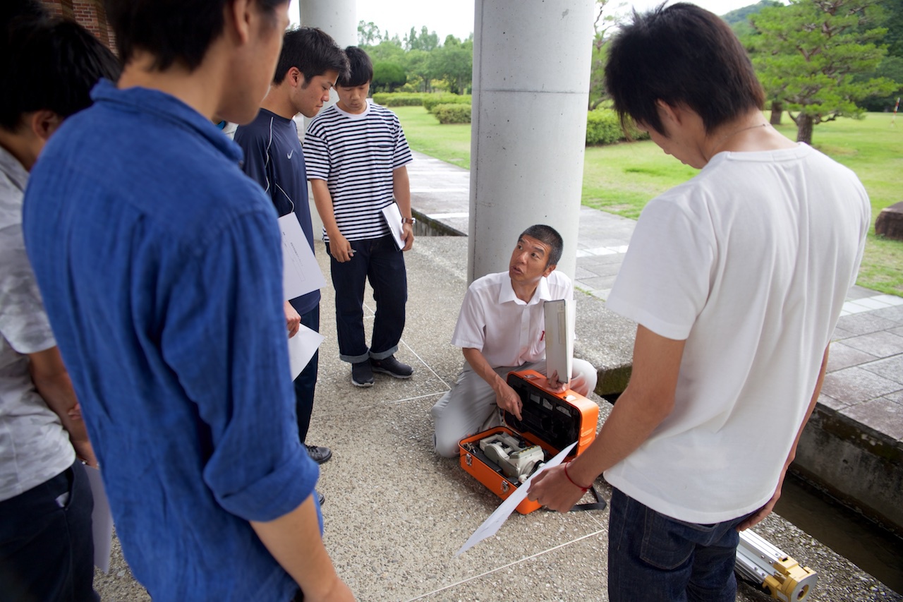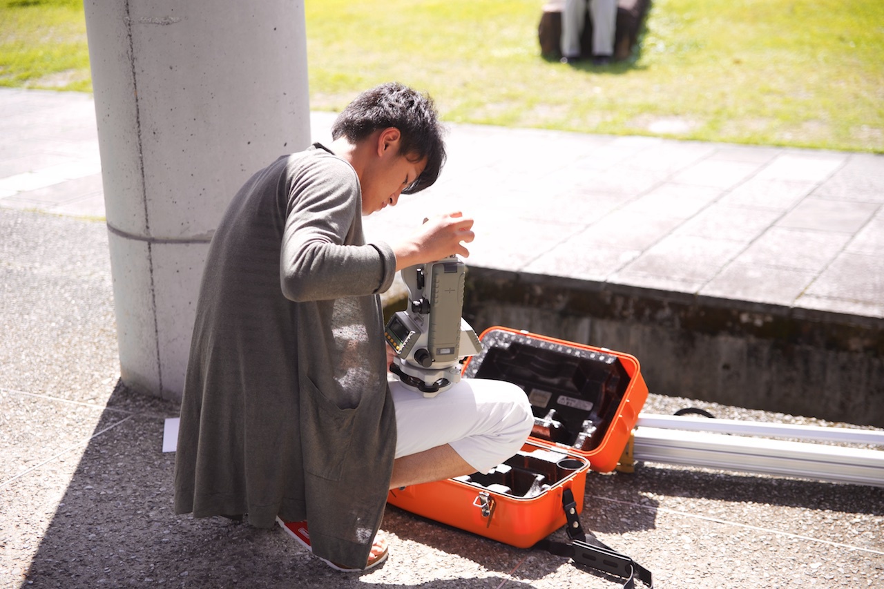 機材のセッティングが完了したら、水準と設置位置のチェックを受けます。