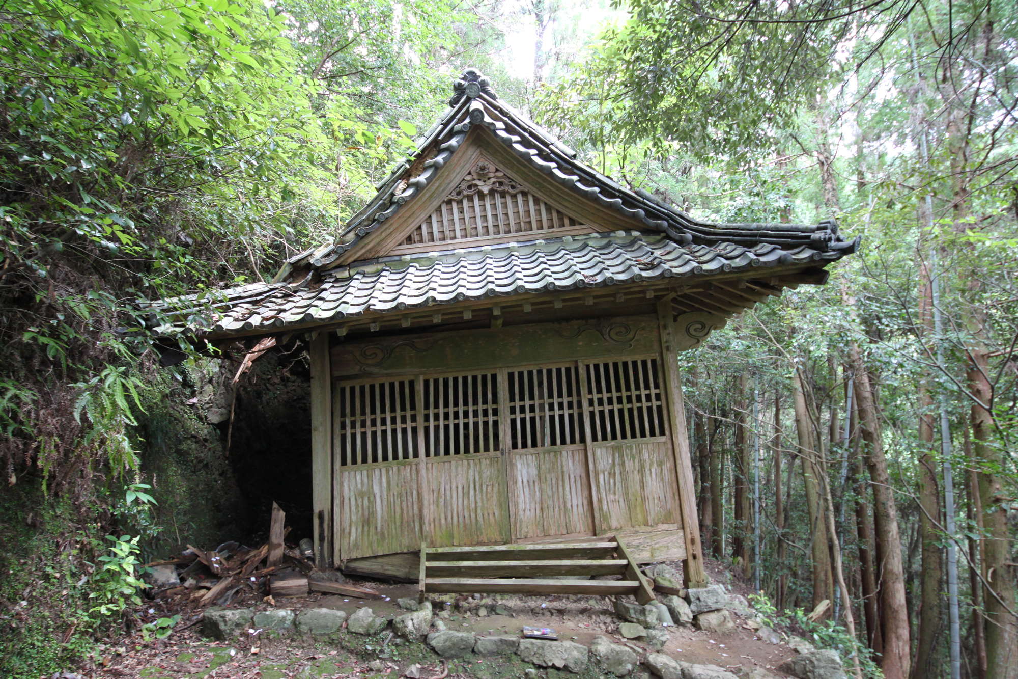佐岡プロジェクトにおいて、古民家周辺にある金峯神社が危険な状況で崩落しかけています。