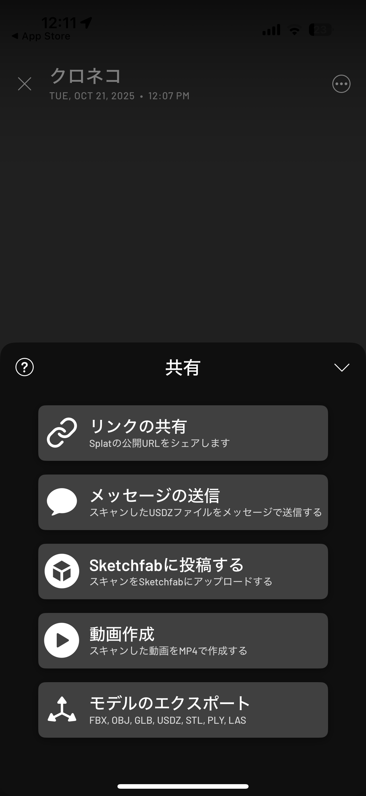作成した3Dスキャン画像の一覧は、最初の画面の左下「ライブラリ」から閲覧できます。そこから共有もできます。