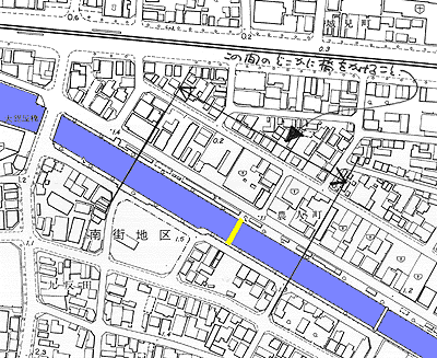 - 中央のスパン(径間長=橋桁の長さ)は、20m以上とする。河川内に橋脚を立ててはならない。