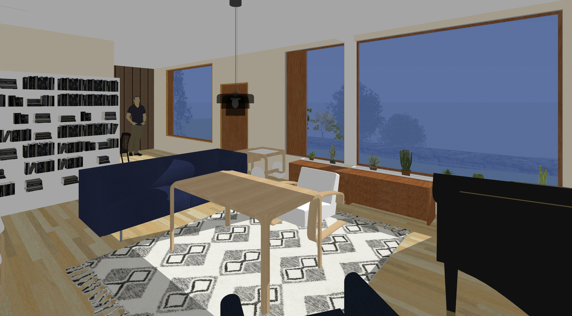 この講義・演習では、デザイン&プレゼンテーションのための道具としての3D-CADと動画編集アプリの利用方法を学びます。構造物や、空間をデザインするための道具として、従来はスケッチ、模型、図面などが用いられてきましたが、今日では、コンピュータを利用して、3次元の空間をモデリングし、そこからウォークスルームービーを書き出して、動画を編集し、インターネットに公開することが可能となり、積極的に利用されるようになっています。