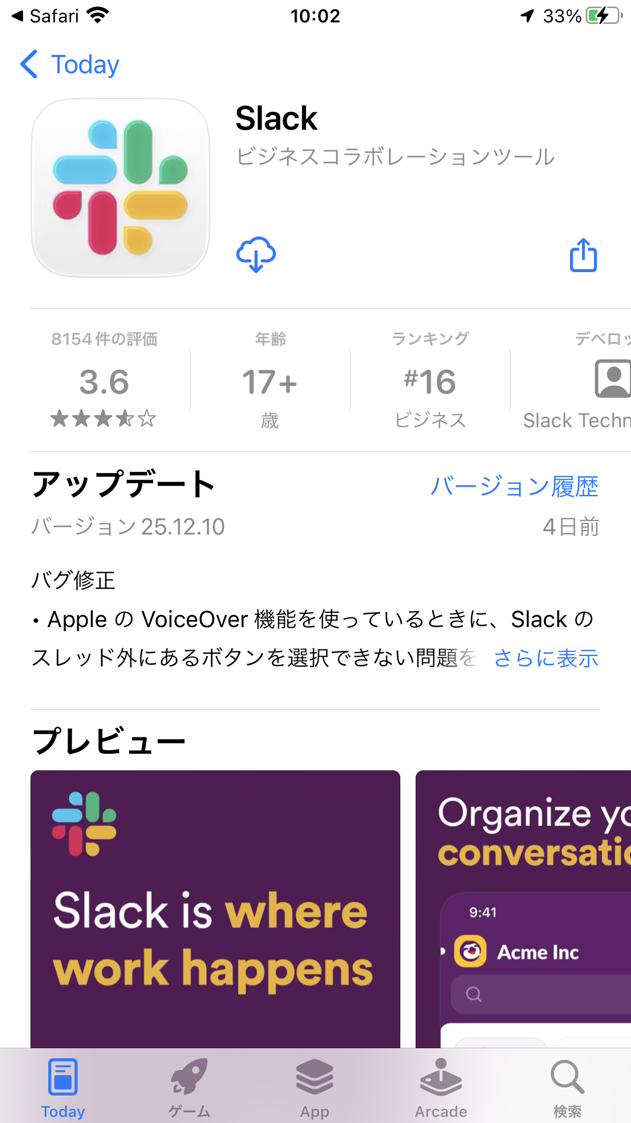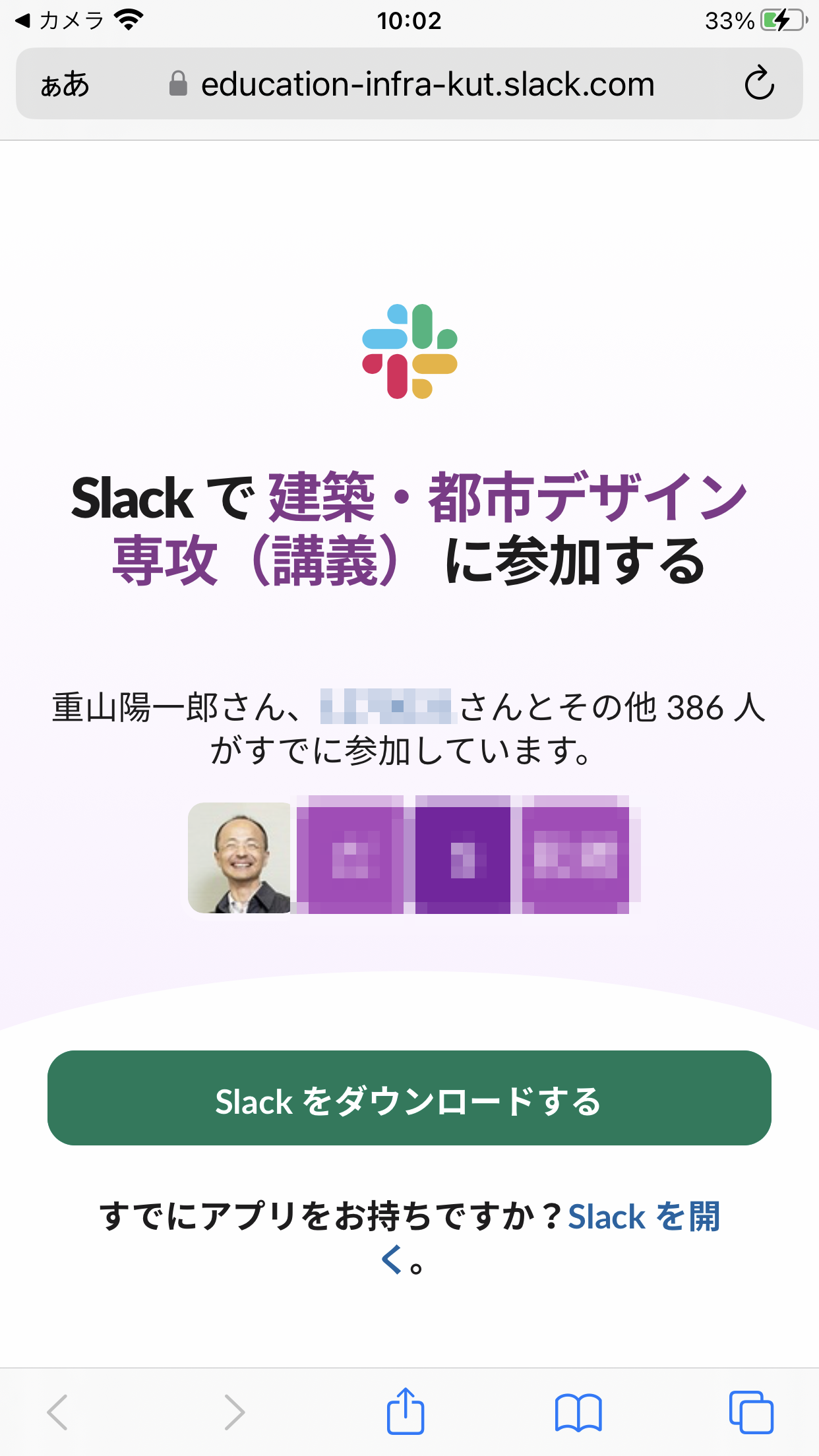 ②Slackのアプリをダウンロードするように指示されます。
