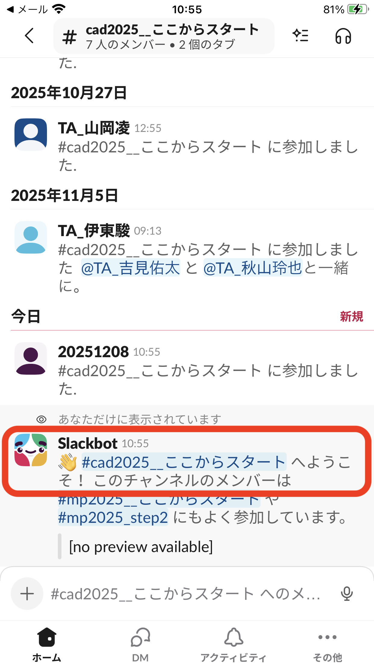 QRコードは招待リンクで、講義で提示します。