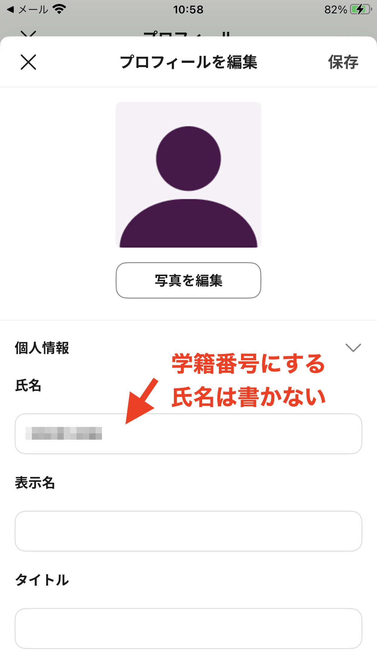 アカウントの登録の際に、氏名を学籍番号にしなかった場合の修正方法です。